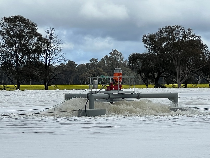 A 55kW aerator on the right of the image, in the first aerated lagoon - photo taken earlier this week, with staff happy with visual improvements at the facility.