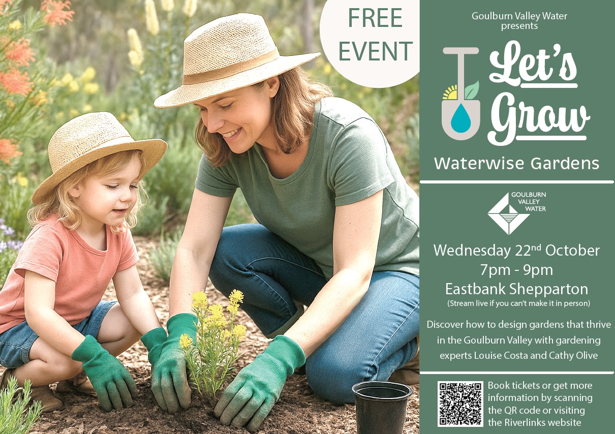 Goulburn Valley Water is extending an invitation to households, schools and community groups from across its 54-town service area to register for either the Let’s Grow Waterwise Gardens event or for Water Night.