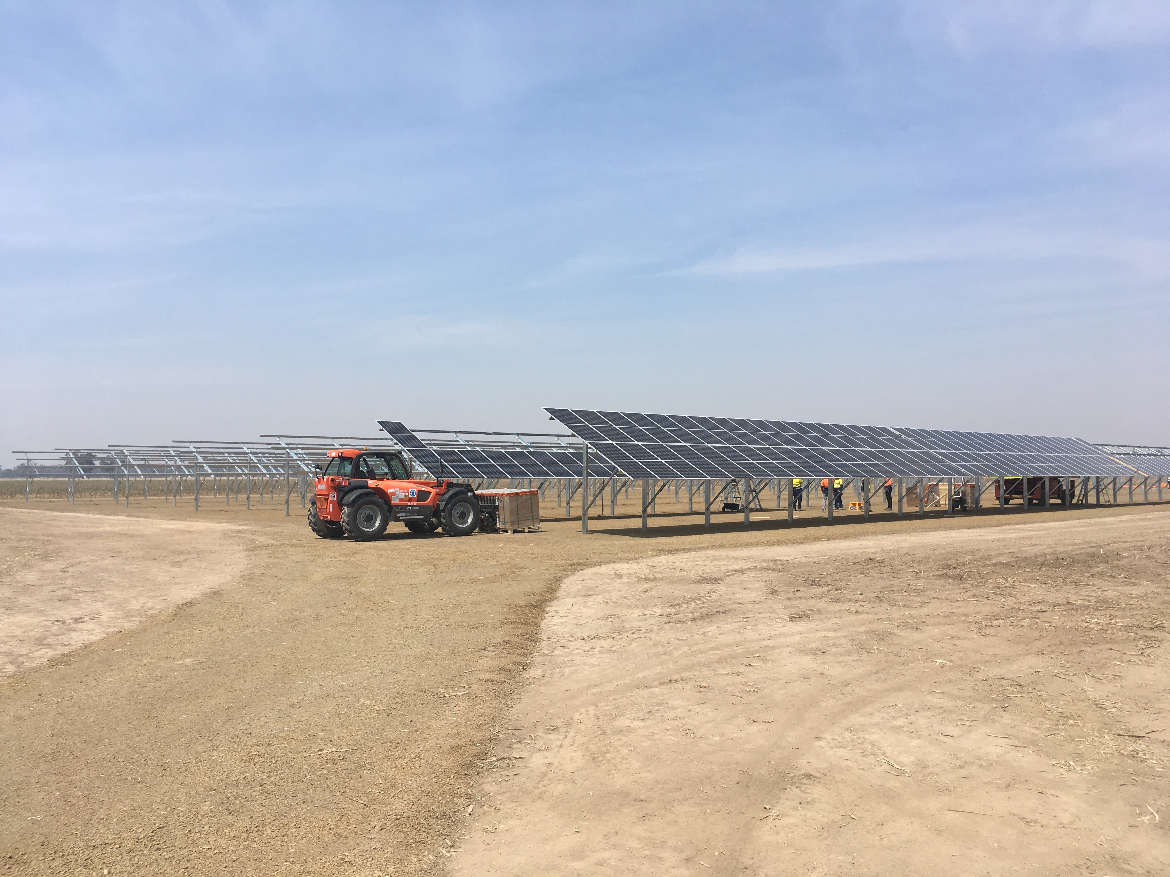 Works are underway at Daldy Rd north of Shepparton, with the mounting structure for the solar farm erected and installation of the panels scheduled for tomorrow.