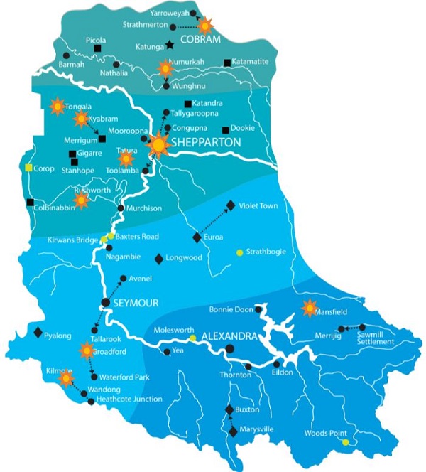 Panels will be installed in Shepparton (at a total of 7 GVW sites), Broadford, Cobram, Kilmore, Kyabram, Mansfield, Numurkah, Rushworth, Tatura and Tongala.